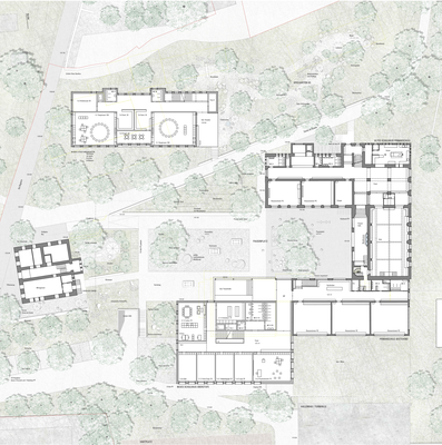 Mit der Setzung des Neubaus, sowie den Bestandesbauten der Schulanlage und des Gemeindehauses, entsteht eine Abfolge unterschiedlich grosser und differenzierter Freiräume, welche das Ensemble adäquat ergänzen und beleben. Zentraler Ort des Geschehens ist das Dorfzentrum.
